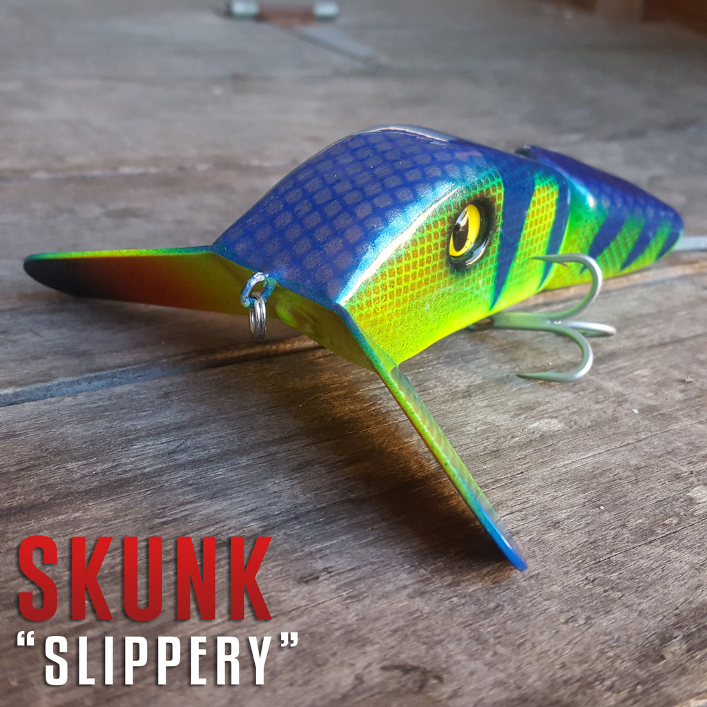 A surface paddler big enough to raise the attention of any resident cod! At 130mm in length and a shade over 2oz in weight, Skunk casts a solid shadow as he walks across the surface - no self-respecting Cod would let a feed like that get away without an enquiry!